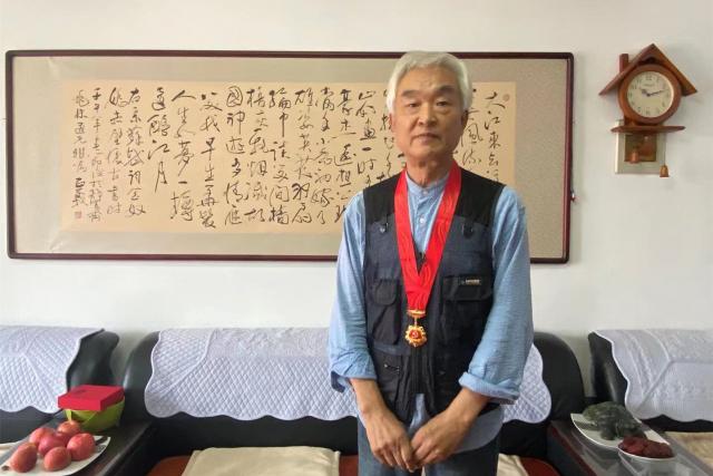 原省作協黨組書記、主席劉兆林將紀念章佩戴在胸前