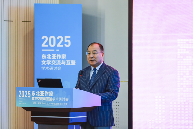 叢明才校長在致辭中表示,大連外國語大學(xué)將依托多語種教學(xué)與研究優(yōu)勢(shì),持續(xù)支持遼寧文學(xué)海外傳播中心建設(shè),推動(dòng)中國文學(xué)“走出去”,助力東北亞文學(xué)在全球語境中實(shí)現(xiàn)共鳴。他回顧了學(xué)校與遼寧省作家協(xié)會(huì)于2024年共建“遼寧文學(xué)海外傳播中心”的合作成果,強(qiáng)調(diào)文學(xué)作為跨越疆界的心靈橋梁,在促進(jìn)不同文明交流對(duì)話中具有重要作用。